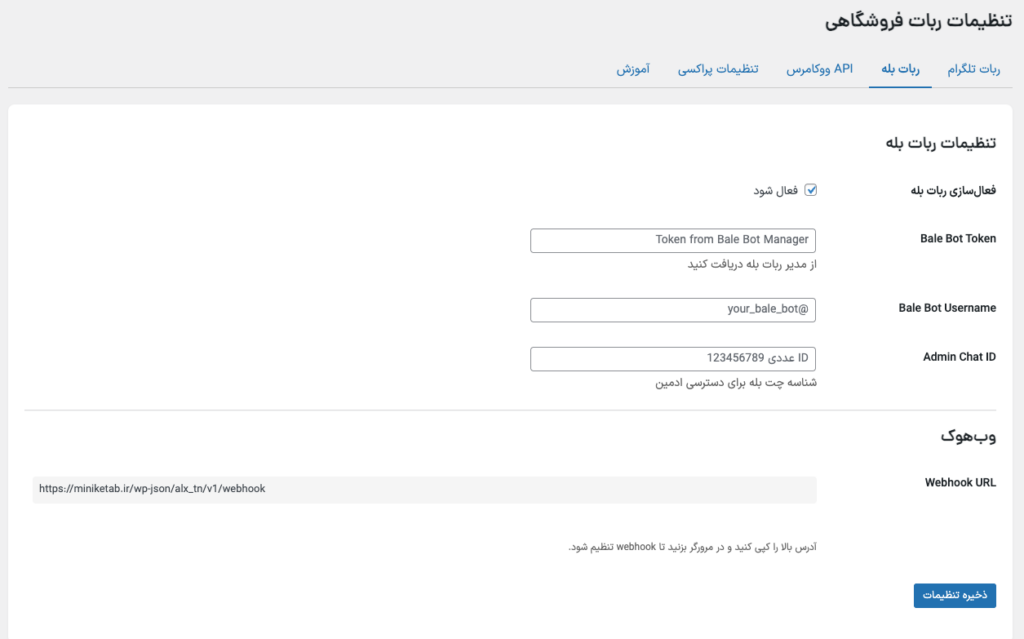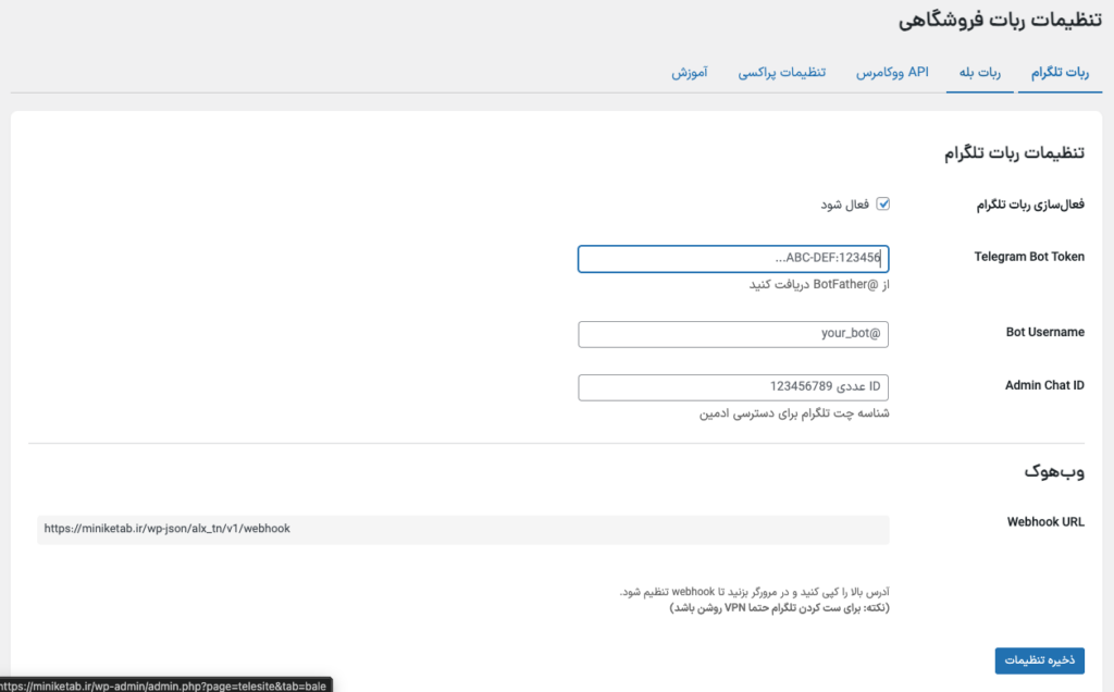 • تعریف و ذخیره توکن و تنظیمات ربات تلگرام و بله (در وردپرس)